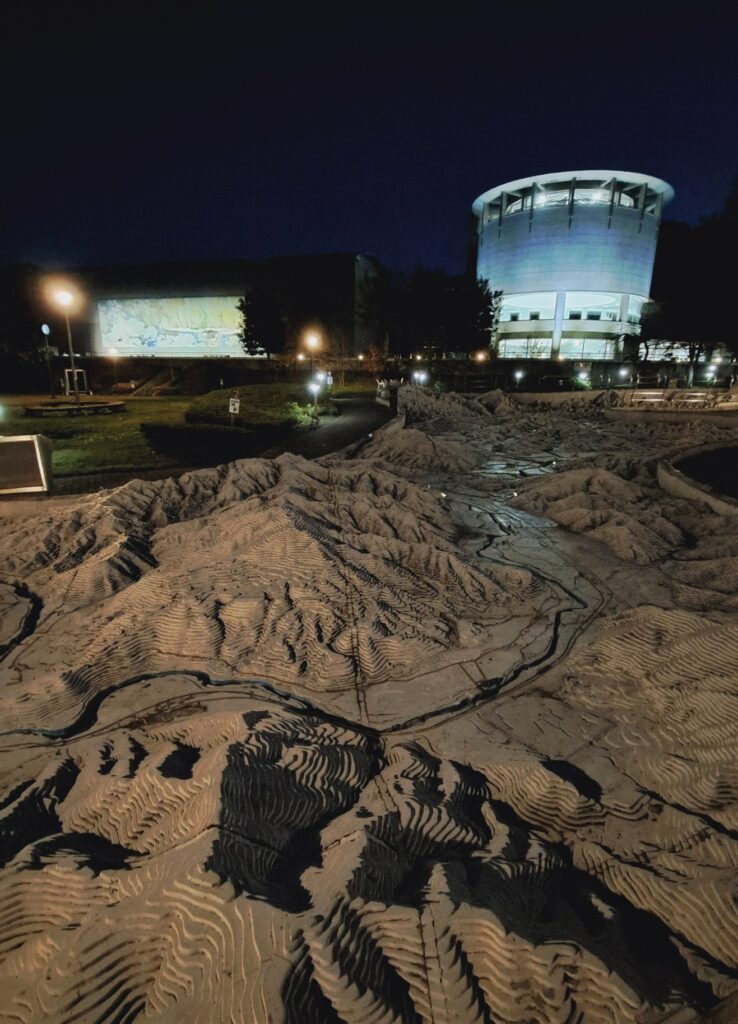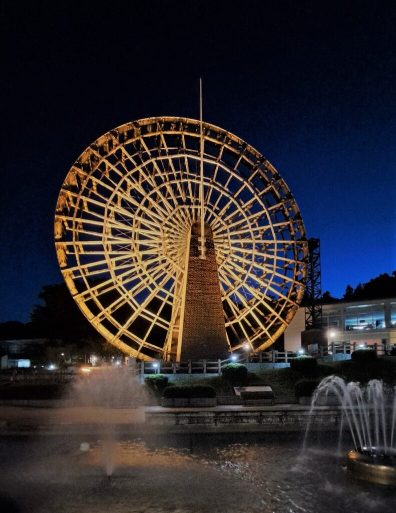 お日様が沈む16:00過ぎから閉館まで、「大水車」の他に「大陶板画」、「本館」などを光で照らします!