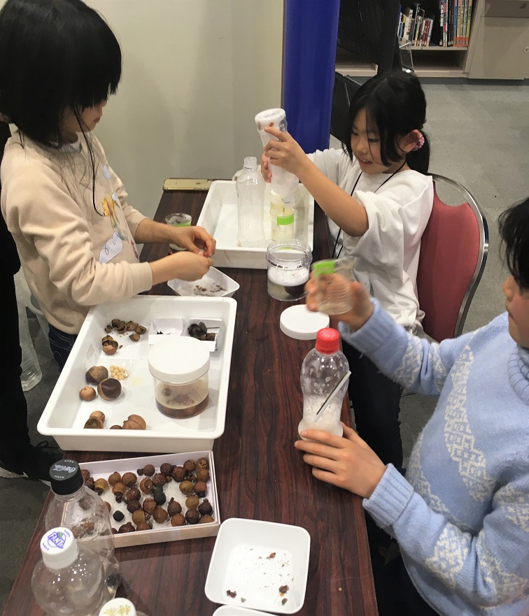 泡が出る植物「ムクロジ」や「栃の木」の実を使って