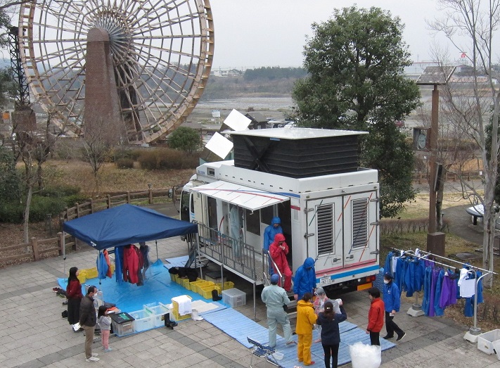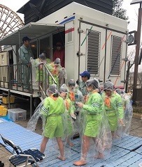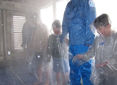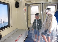 体験車のなかでは 大雨警報レベルの30mm/hから