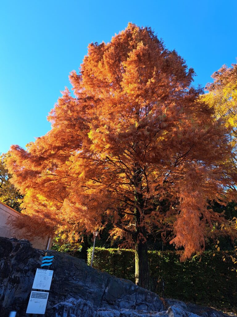 来年もし荒川わくわくランドを利用することがあったら、緑の葉に覆われた落羽松を見てくださいね。