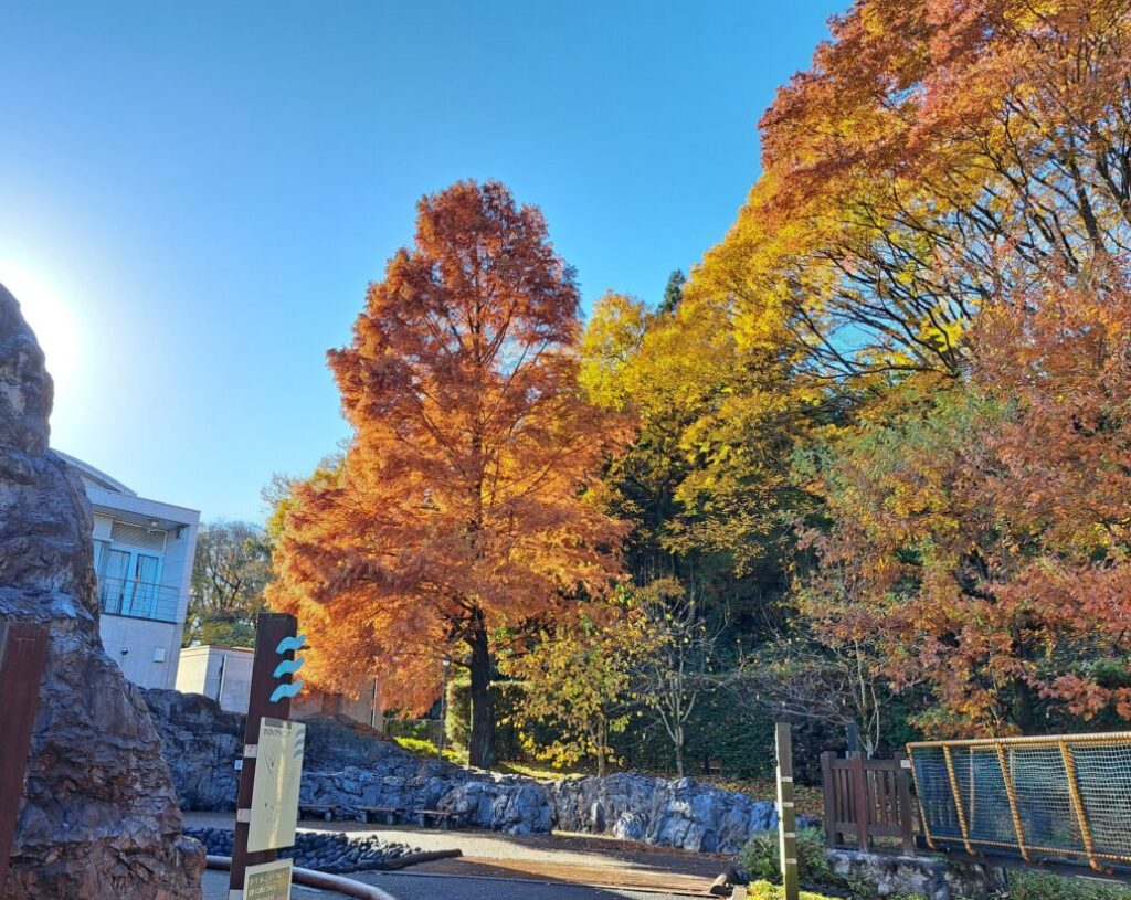 冬期休園中の荒川わくわくランド、閉鎖中なので入園できないから誰にも見てもらえないけれど、とても綺麗に色づいていたので、ブログで紹介します。
