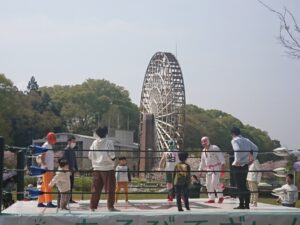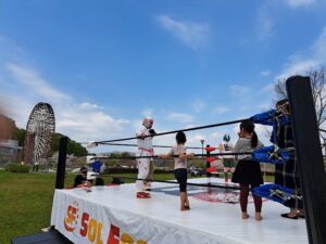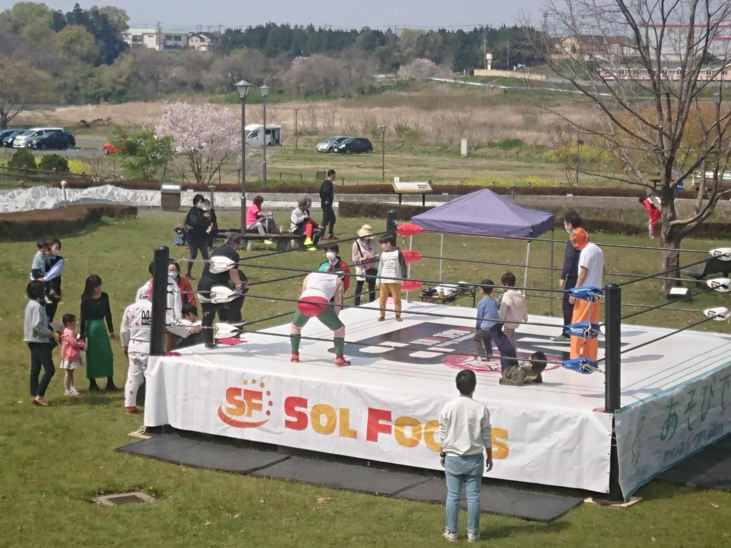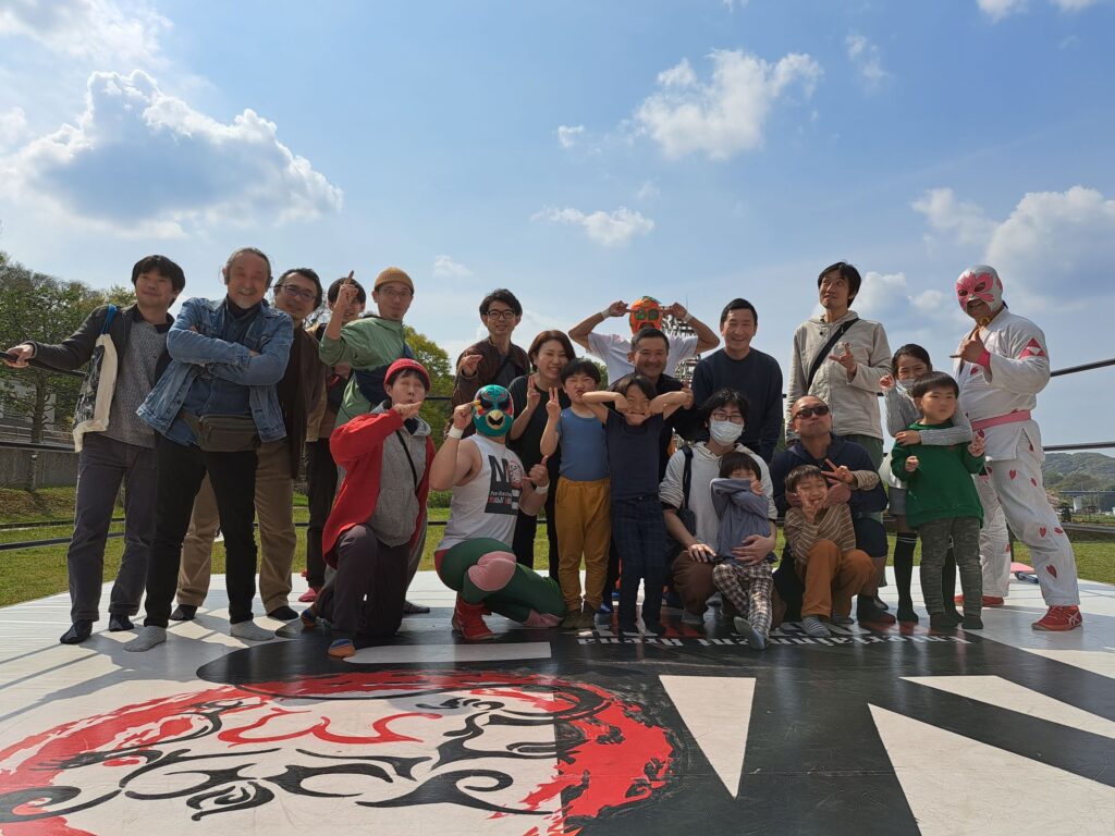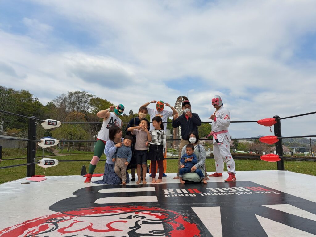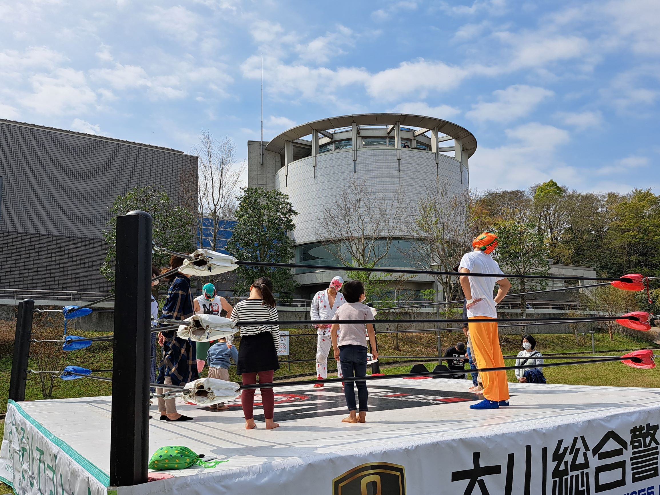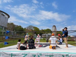 ホームイベントレポート 「かわはくで桜とスポーツを楽しむ」を開催しました。 2023/04/06 SHARE ツイート シェア はてブ Google+ Pocket LINE 4月2日にファミリー広場で、寄居町のご当地レスラー3人とマット運動などの運動をしました。 暖かな風が吹き桜の花びらが舞う中、試合にも使用するリングの上でご当地レスラーの「桜の戦士セレジェイラ」「キジの戦士ファイサオ」「みかんキッド」の3人と一緒に、腕立て伏せや前転後転などのマット運動、受け身の練習など約50分間行いました。 レスラーと一緒に運動することやリングの上に乗ることなど、普段ではできないとても珍しく貴重な体験となりました。 皆さん、ありがとうございました。