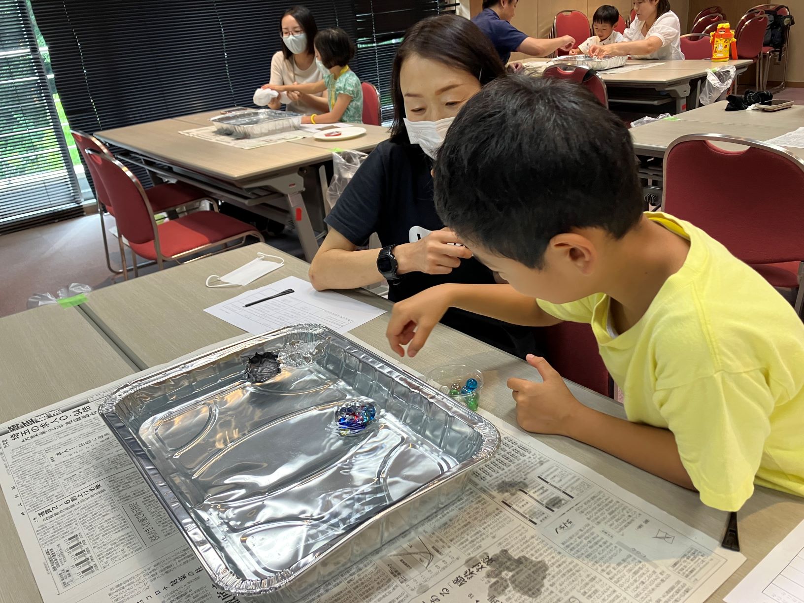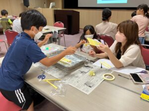 全員参加のイベントですので、みんなで予想し実験をします。そして分かったことを予想シートに記入してもらいました。