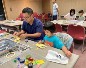 最後は船を作ります。みんな個性的な船を作りました。大人の方が真剣だったかもしれません。