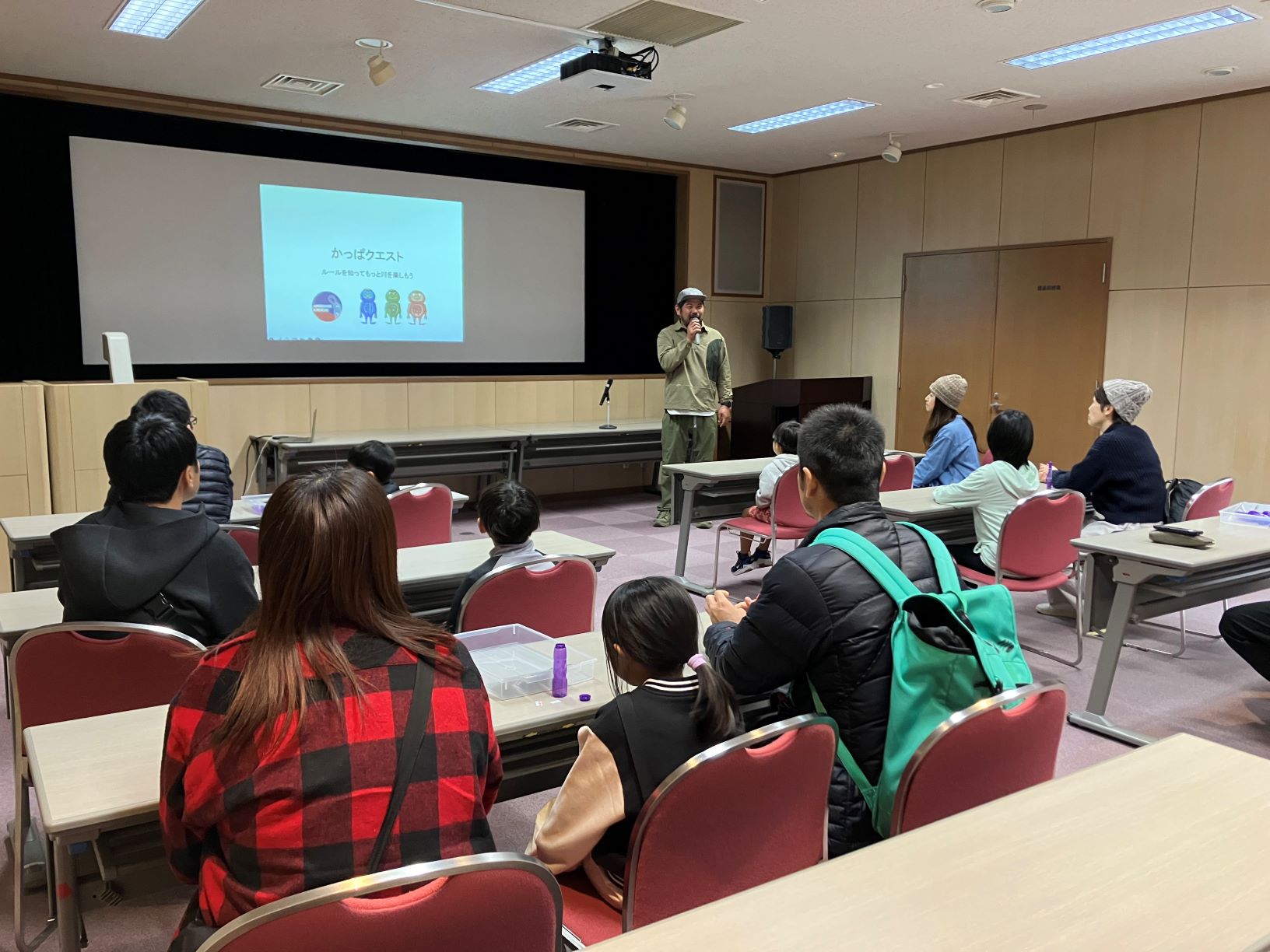 11月23日(木・祝)に、冬期閉園中の「荒川わくわくランド」を利用して、講師にレスキューインストラクターの平井琢さんをお招きして「″かっぱクエスト”ルールを知ってもっと川を楽しもう」を開催しました。