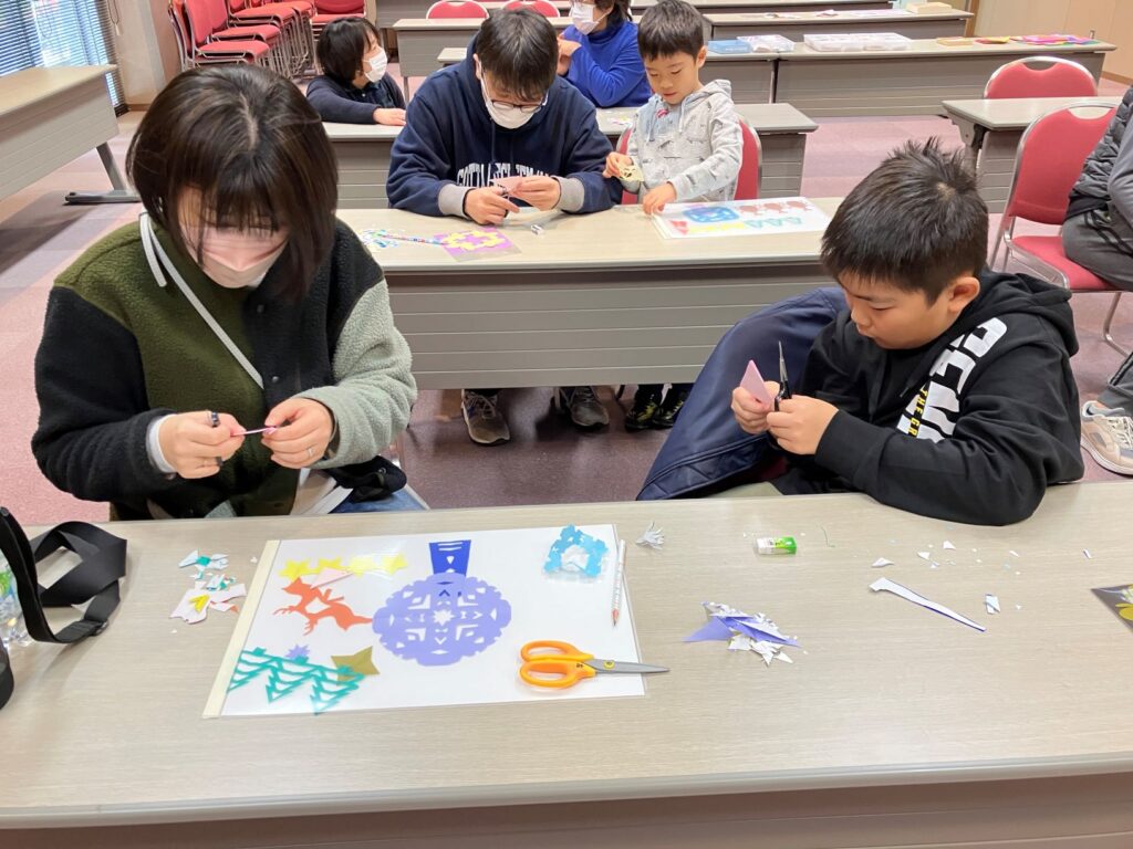 大水車ができたら、クリスマスらしく“もみのき”や“サンタクロース”などクリスマスの飾りも切り抜いてゆきます。