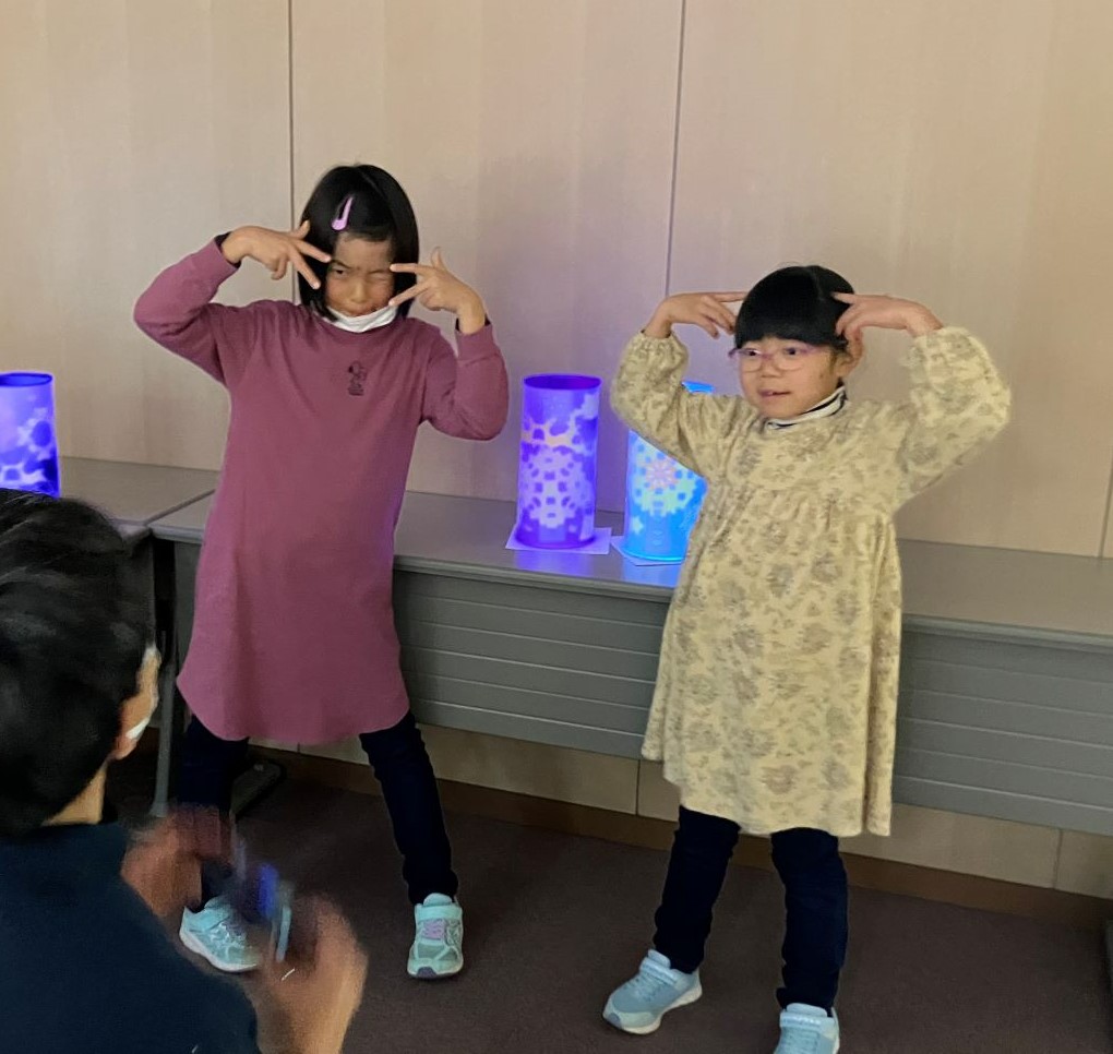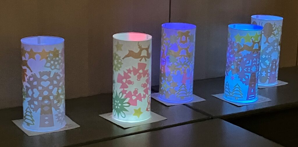 最後はみんなの作品を飾って、電気を消して鑑賞会です。