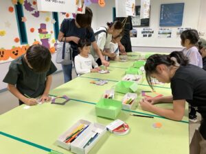 ハロウィン仕様に模様替えしたワークショップで、みんな真剣に作ってくれてました。