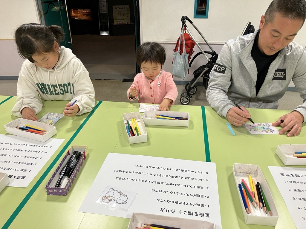 当館スタッフお手製の星座のぬり絵に、集中して取り組んでくれていました。