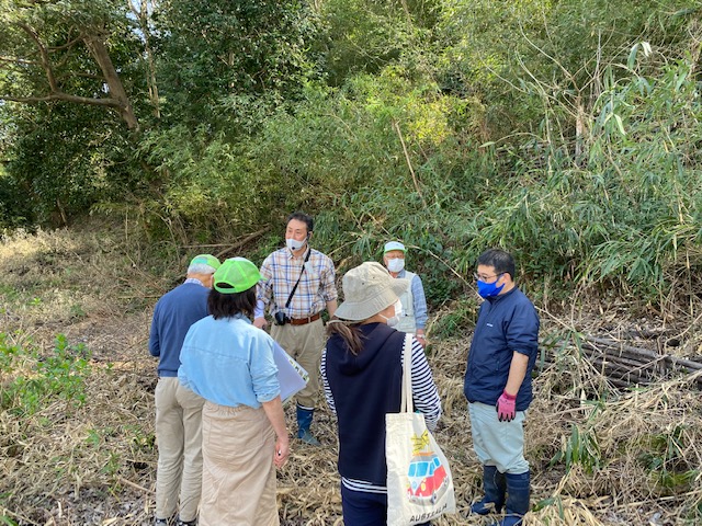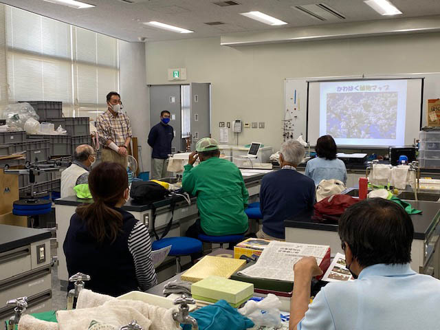 スライドで当館敷地内の植物相の講義から始まり、暖かく絶好の晴天の下、